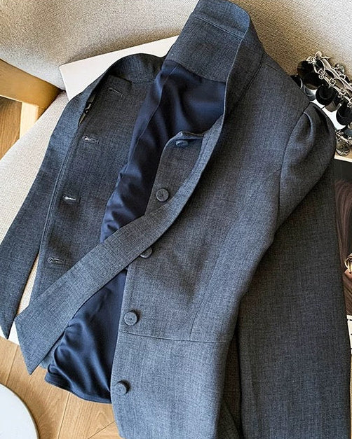 ウエストラインを美しく魅せるペプラムシルエットのジャケットはオフィススタイルやビジネスミーティング、フォーマルな場面にもおすすめです。