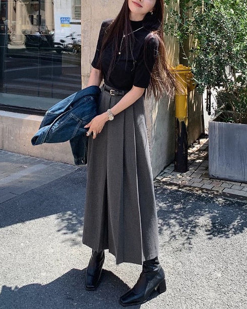 Elegant High-Waist A-Line Maxi Skirt 00498
