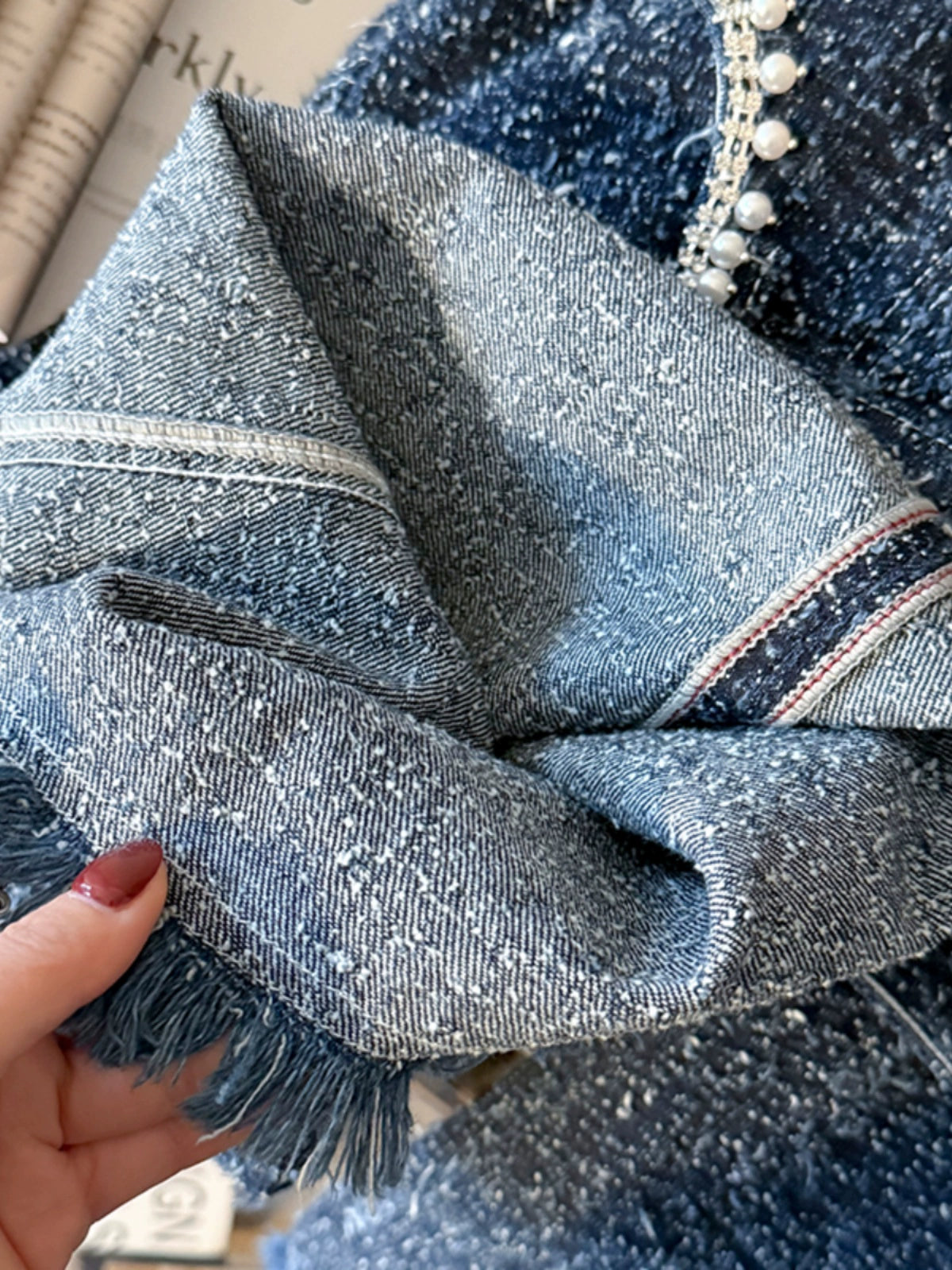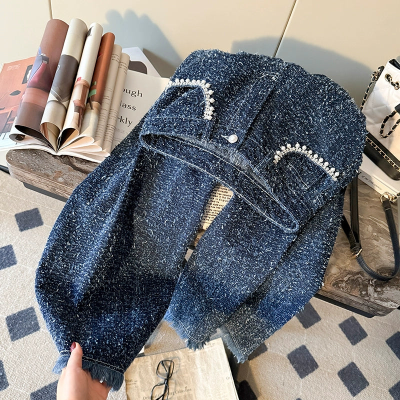 Tweed High Waist Straight Denim Pants 00090